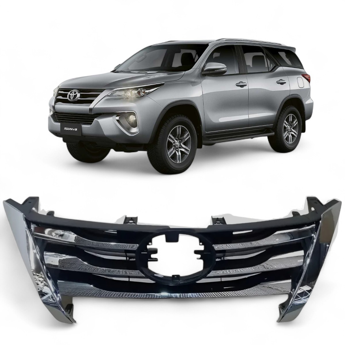 A GRADE DIANTEIRA TOYOTA HILUX SW4 2016 2017 2018 CROMADO é feita em plástico de alta resistência e garante um visual ainda mais bonito para seu carro e mantem a originalidade do Veículo. Aproveite para trocar sua grade danificada ou em mau estado.